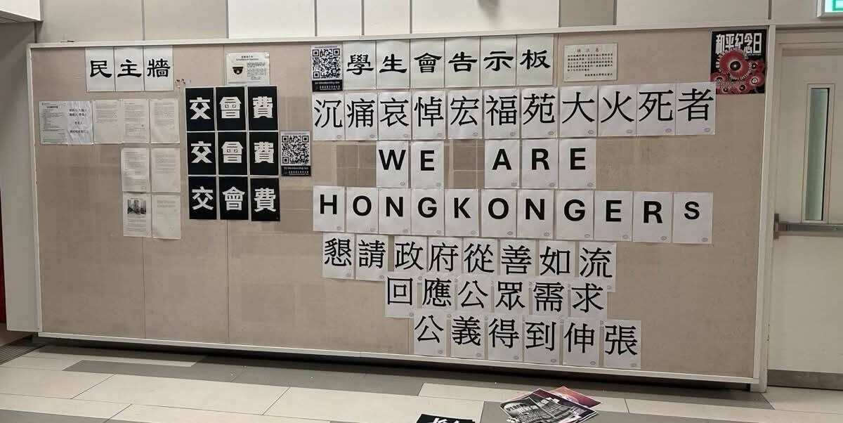 Solidaritätsbekundungen an der Baptist Universität wurden daraufhin von der Universitätsverwaltung verdeckt – vergleiche mit Eingangsbild oben!
