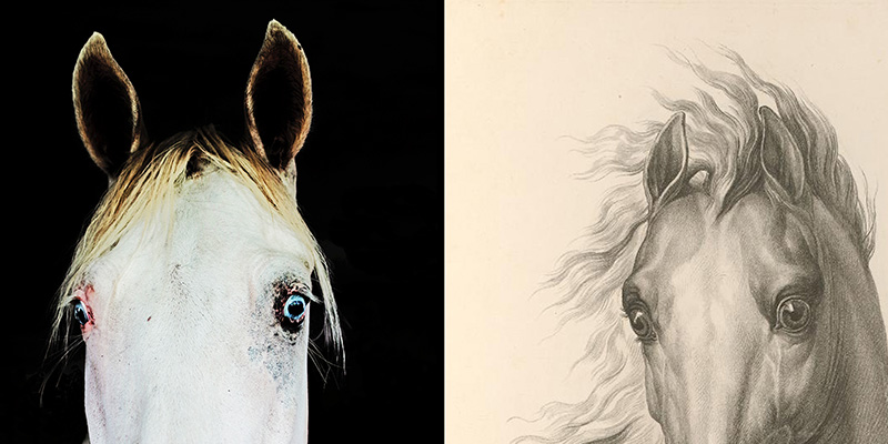 Ihr fragt euch hier zu Recht erneut, wann dieser großspurig als Brandenburg-Berlin-Kunst-Blog ins Rennen gegangene Brandenburg-Berlin-Kunst-Blog (wenn schon literarisch unglückliche Wortwiederholung in einem Satz, dann aber richtig) endlich wieder raus aus Vienna und back to the basics geht. Der VdZ gelobt Besserung und nähert sich schrittweise (die Kunst in Brandenburg befindet sich eh noch im Winterschlaf) wieder B&B an. Hier allerdings noch eine weitere (sorry, folks!) Exkursion nach Wien, diesmal in die Sammlung der Albertina. Ich habe Pferdebilder dieser Sammlung (die Bilder sind online für Jede/n zugänglich) meinen fotografischen Studien zum Thema PFERD (aus meinem Langzeitprojekt DER TROST VON PFERDEN) gegenübergestellt. Das Ergebnis dieses Dialoges möchte ich Euch hier und jetzt präsentieren – auch als kleinen Vorgeschmack auf meine Ende Februar beginnende Soloshow IM JAHR DES FEUERPFERDES in der Klosterscheune Zehdenick