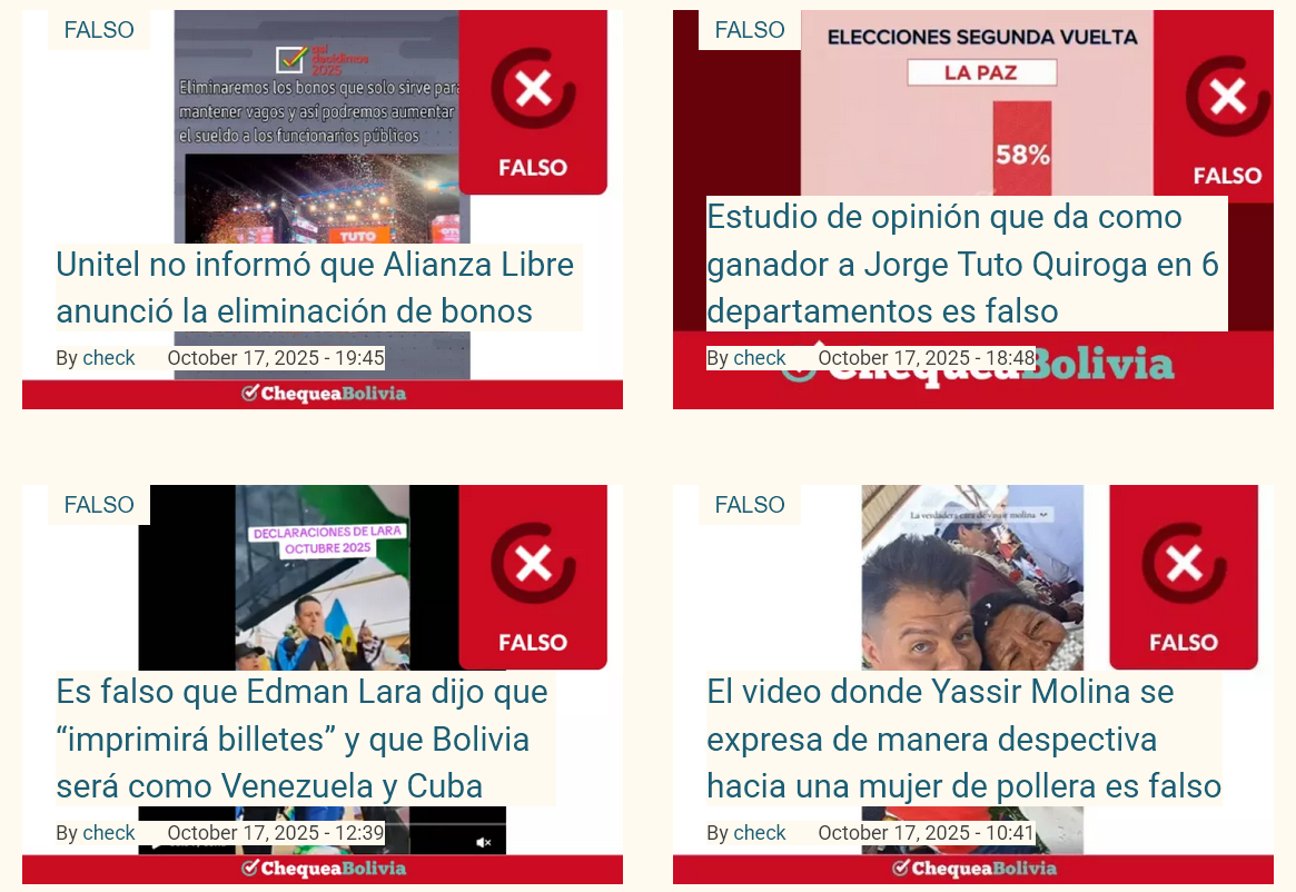 Ginge es nach dem umgesetzten Wahlkampfetat und den letzten veröffentlichten Meinungsumfragen, wird am Sonntag Jorge Tuto Quiroga zum neuen Präsidenten gewählt. Doch die hatten sich schon vor dem Urnengang im August als wenig zuverlässig erwiesen. Resigniert hat auch das Wahlgericht festgestellt, dass es die Schmutzkampagnen in den „sozialen“ Medien nicht kontrollieren könne. Und die Fakten-Check-Portale sind nicht nur allein mit der Menge an Fake News überfordert, sie erreichen auch nur ein viel kleineres Publikum.