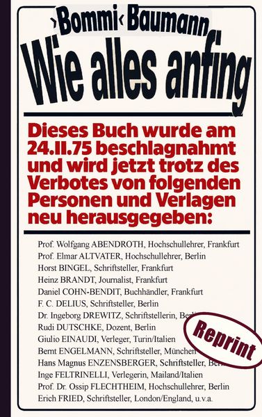 Bommi Baumanns zelig-gleiche Geschichte aus dem linksradikalen Westberliner Untergrund der End60er, die selbstredend für mehrere Jahre in der BRD verboten war.