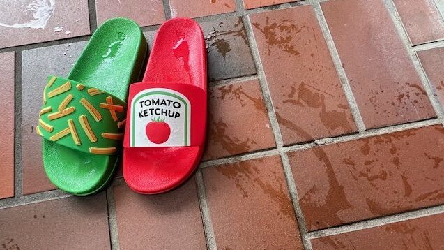 Die Badelatschen, die ich dankenswerter Weise für den Blog fotografieren durfte, weisen den Weg. Diese hier im Prinzenbad zu tragen, ergibt also Sinn. Nein, es ist keine Schleichwerbung. Oder doch? Egal!