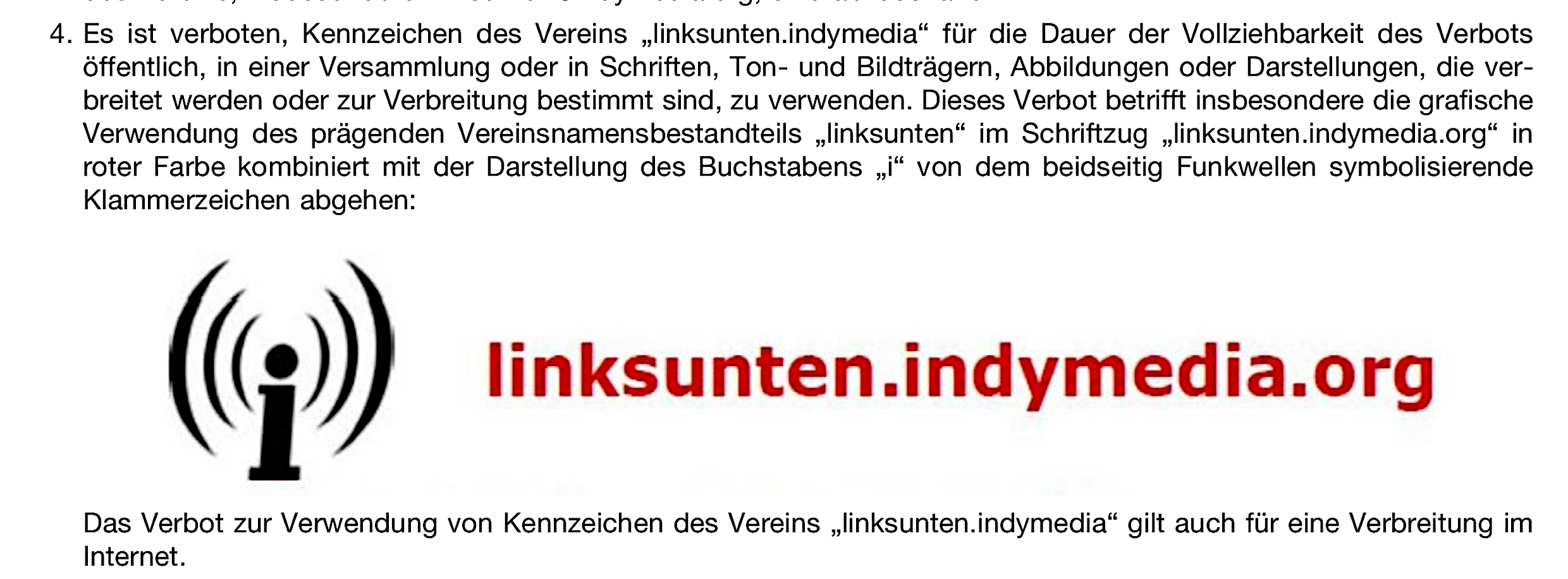 „Regelungsgegenstand des Verbotsbescheids ist nicht das Verbot des unter der Internetadresse ‚linksunten.indymedia.org‘ betriebenen Veröffentlichungs- und Diskussionsportals, sondern das Verbot des dahinter stehenden Personenzusammenschlusses ‚linksunten.indymedia‘ als Organisation“.