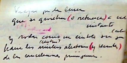 Im Rest des Gedichts wird dann tatsächlich gesucht und etwas anderes gefunden: ein Vogel, die Liebe, das Nichts und der Schlüssel, sämtliche Perspektiven oder Erinnerungen beginnt sich zu drehen, gehen rückwärts, um vorwärts zu kommen, bis wir lachend der Einsicht des Erzählers zustimmen: »Todo pasa. Pero a la inversa« (Alles geht vorüber. Jedoch umgekehrt.)