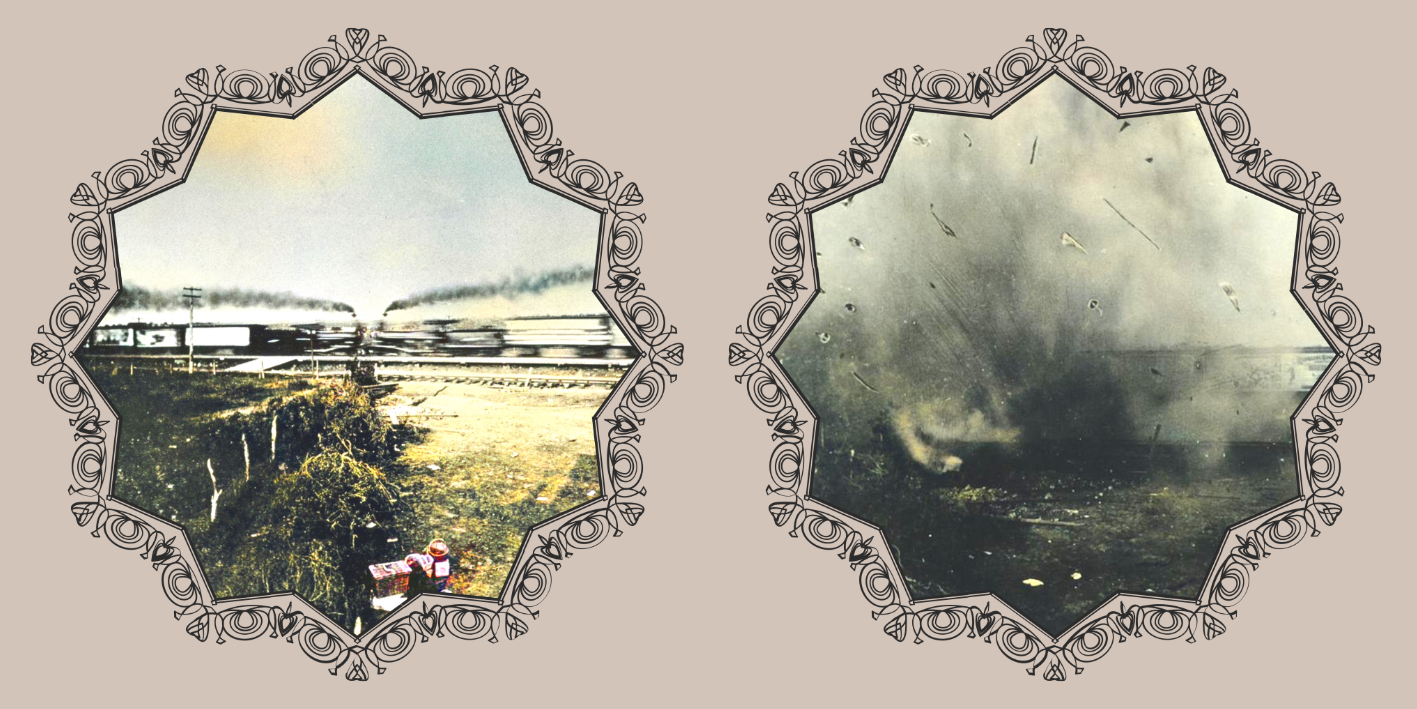- Jervis C. Deane: Der Moment vor der Explosion und Die Explosion, Public Domain, Wikimedia Commons (nachkoloriert).